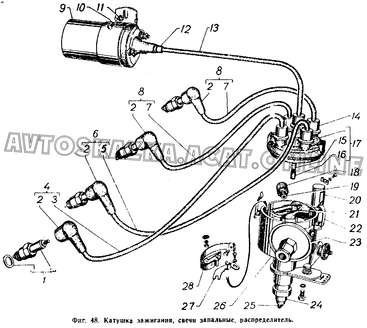 Катушка зажигания, свечи запальные, распределитель ГАЗ 21 (М-21, М-21А, М-21В, М-21Д, М-21Е)