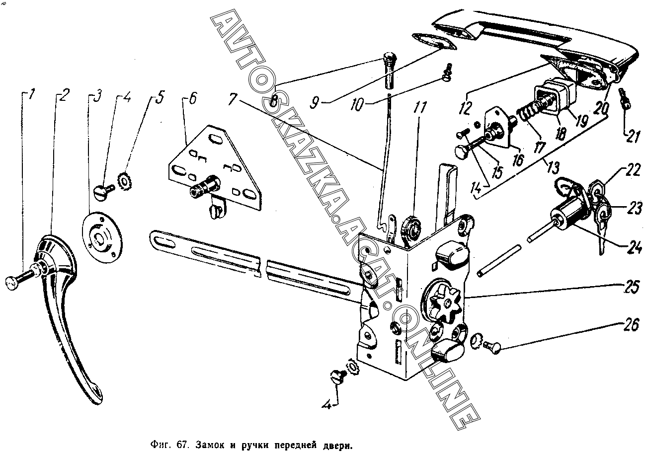 Замок и ручки передней двери ГАЗ 21 (М-21, М-21А, М-21В, М-21Д, М-21Е)