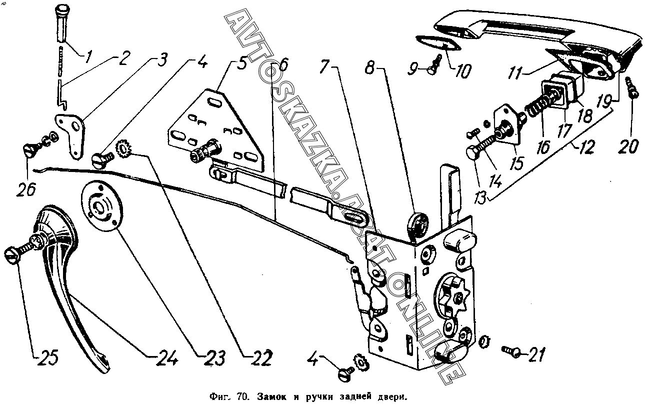 Замок и ручки задней двери ГАЗ 21 (М-21, М-21А, М-21В, М-21Д, М-21Е)