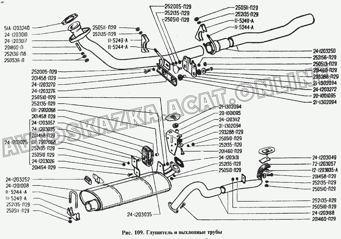 Глушитель и выхлопные трубы ГАЗ 24 (24-01, 24-02, 24-03, 24-04, 24-07)