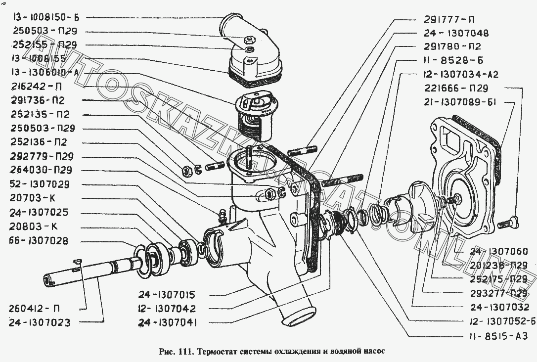 Термостат системы охлаждения и водяной насос ГАЗ 24 (24-01, 24-02, 24-03, 24-04, 24-07)