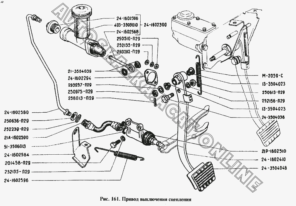 Привод выключения сцепления ГАЗ 24 (24-01, 24-02, 24-03, 24-04, 24-07)
