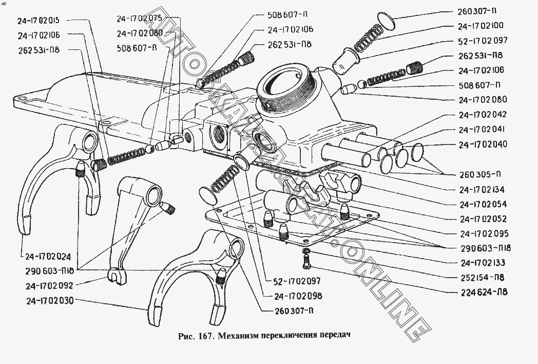 Механизм переключения передач ГАЗ 24 (24-01, 24-02, 24-03, 24-04, 24-07)