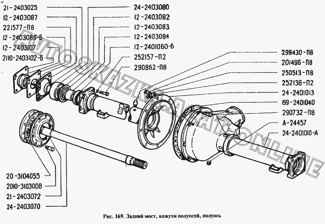 Задний мост, кожухи полуосей, полуось ГАЗ 24 (24-01, 24-02, 24-03, 24-04, 24-07)