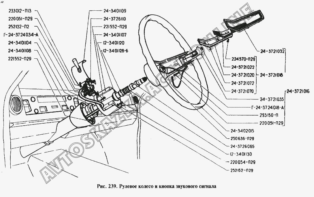 Рулевое колесо и кнопка звукового сигнала ГАЗ 24 (24-01, 24-02, 24-03, 24-04, 24-07)