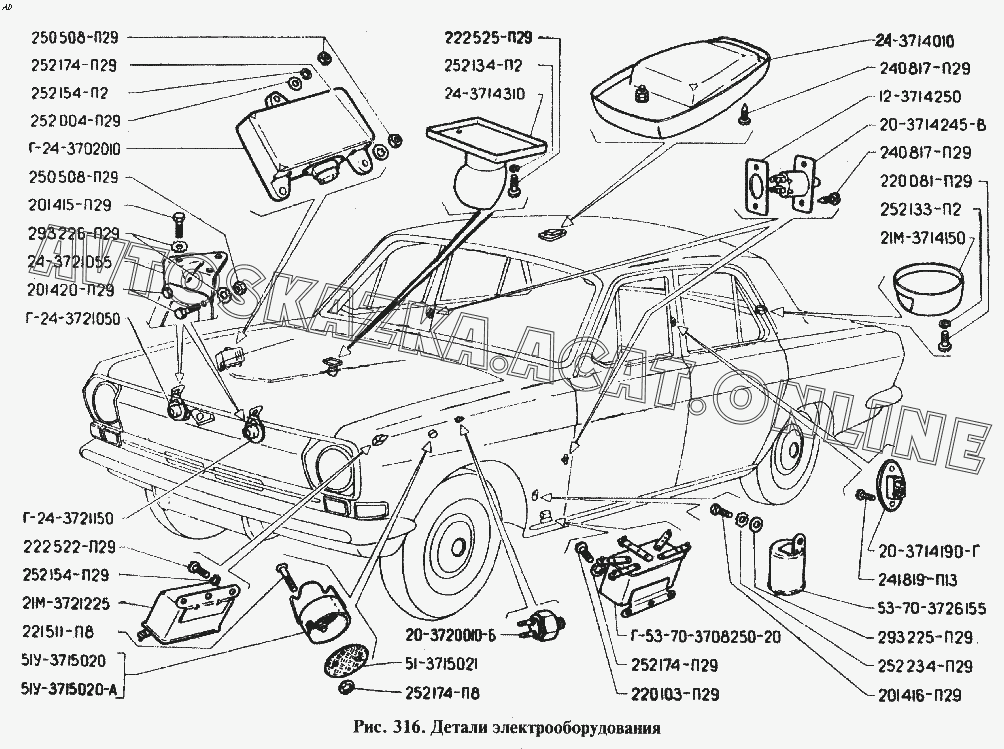 Детали электрооборудования ГАЗ 24 (24-01, 24-02, 24-03, 24-04, 24-07)