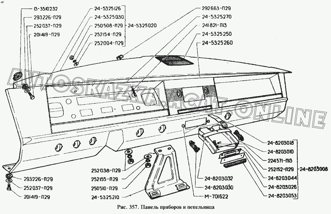 Панели приборов и пепельница ГАЗ 24 (24-01, 24-02, 24-03, 24-04, 24-07)