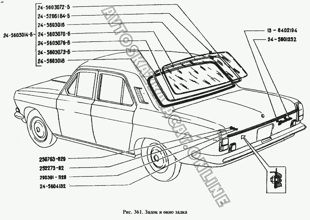 Задок и окно задка ГАЗ 24 (24-01, 24-02, 24-03, 24-04, 24-07)