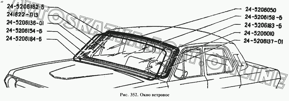 Окно ветровое ГАЗ 24 (24-01, 24-02, 24-03, 24-04, 24-07)