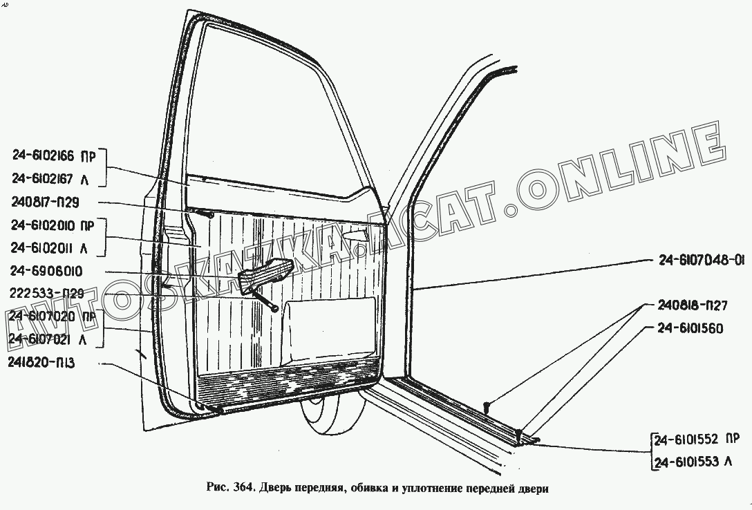 Дверь передняя, обивка и уплотнение передней двери ГАЗ 24 (24-01, 24-02, 24-03, 24-04, 24-07)