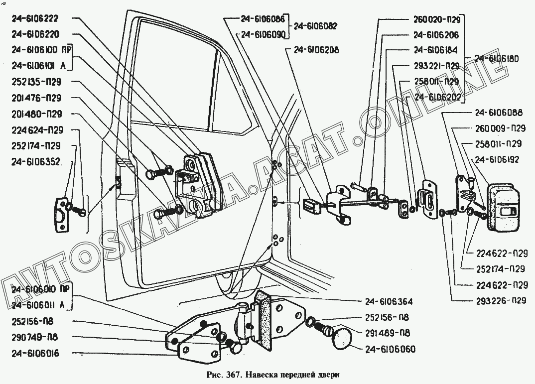 Навеска передней двери ГАЗ 24 (24-01, 24-02, 24-03, 24-04, 24-07)