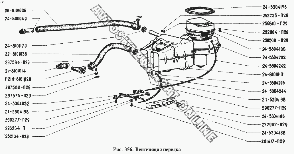 Вентиляция передка ГАЗ 24 (24-01, 24-02, 24-03, 24-04, 24-07)