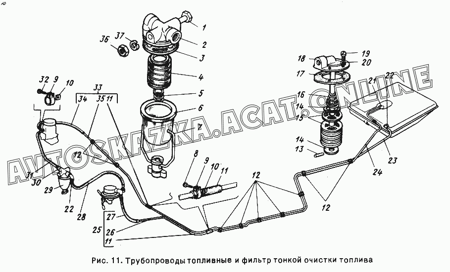 Трубопроводы топливные и фильтр тонкой очистки топлива ГАЗ 24-10 (24-10, 24-11, 24-12, 24-13)