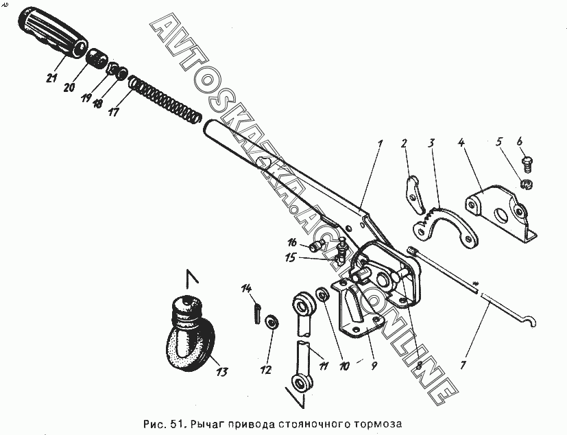Рычаг привода стояночного тормоза ГАЗ 24-10 (24-10, 24-11, 24-12, 24-13)