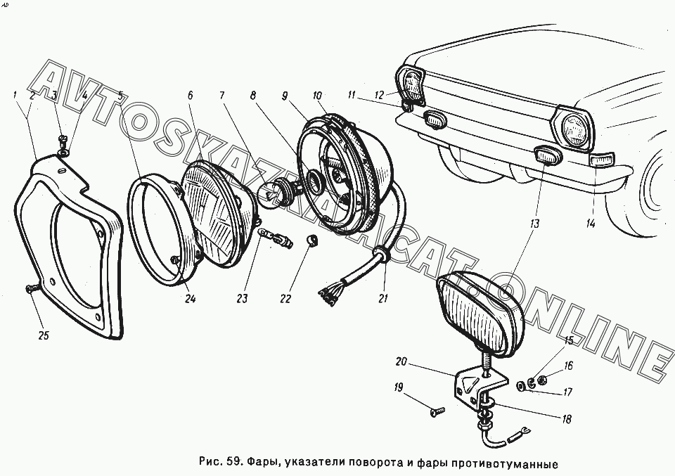 Фары, указатели поворота и фары противотуманные ГАЗ 24-10 (24-10, 24-11, 24-12, 24-13)