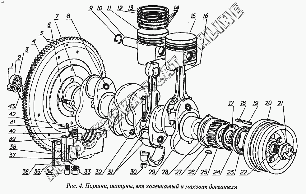 Поршни, шатуны, вал коленчатый и маховик двигателя ГАЗ 31029