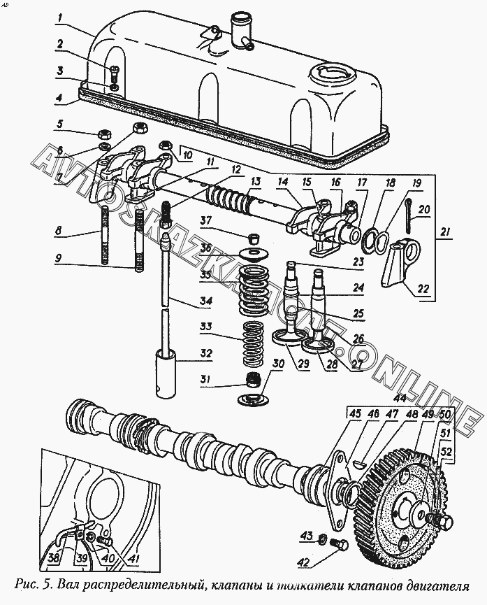 Вал распределительный, клапаны и толкатели клапанов двигателя ГАЗ 31029