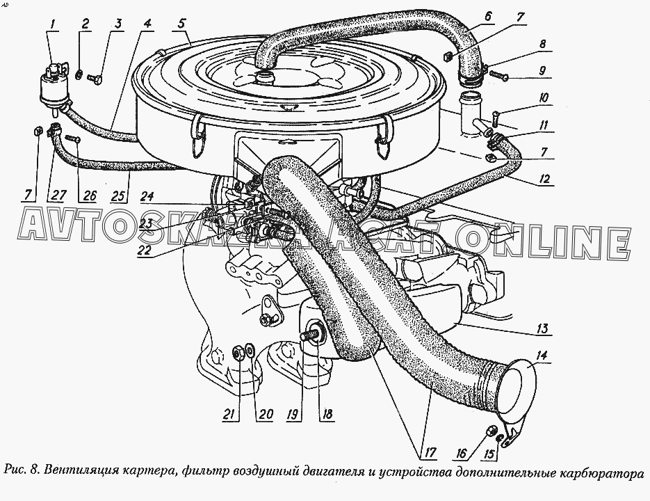 Вентиляция картера, фильтр воздушный двигателя и устройства дополнительного карбюратора