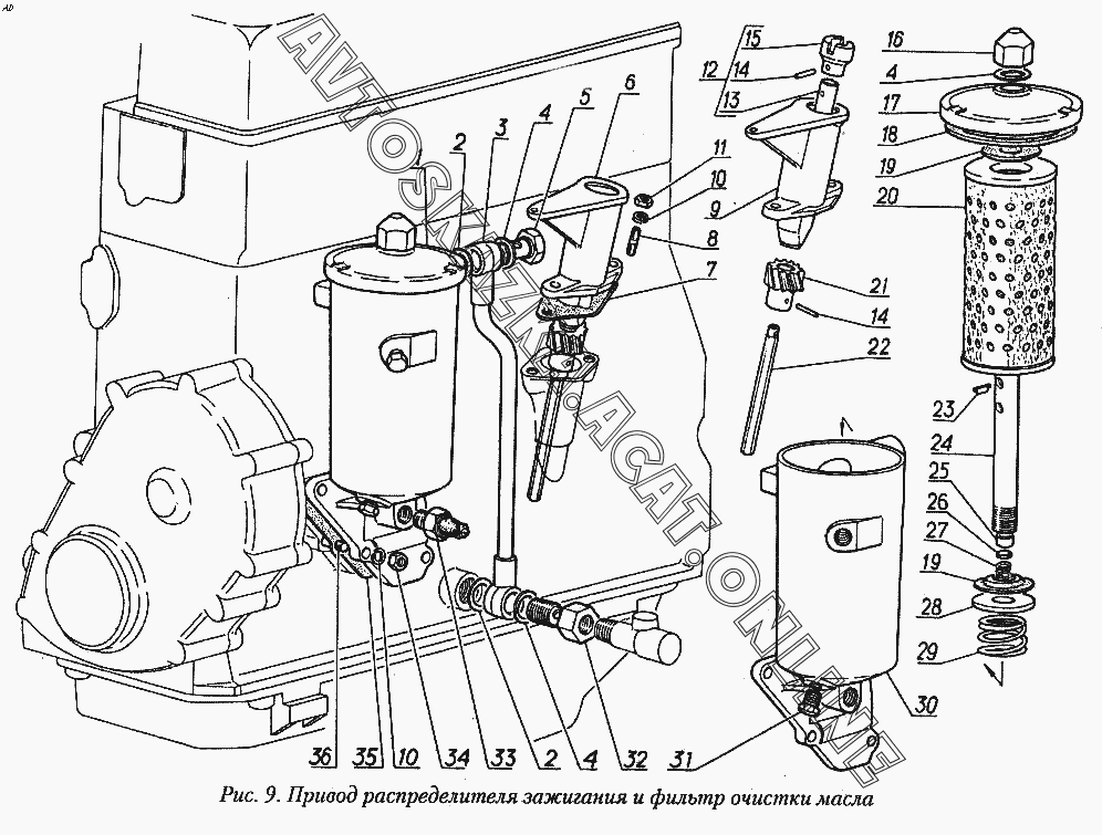 Привод распределителя зажигания и фильтр очистки масла ГАЗ 31029
