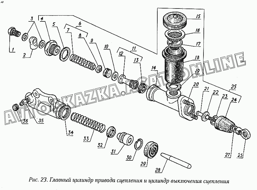Главный цилиндр привода сцепления и цилиндр выключения сцепления ГАЗ 31029