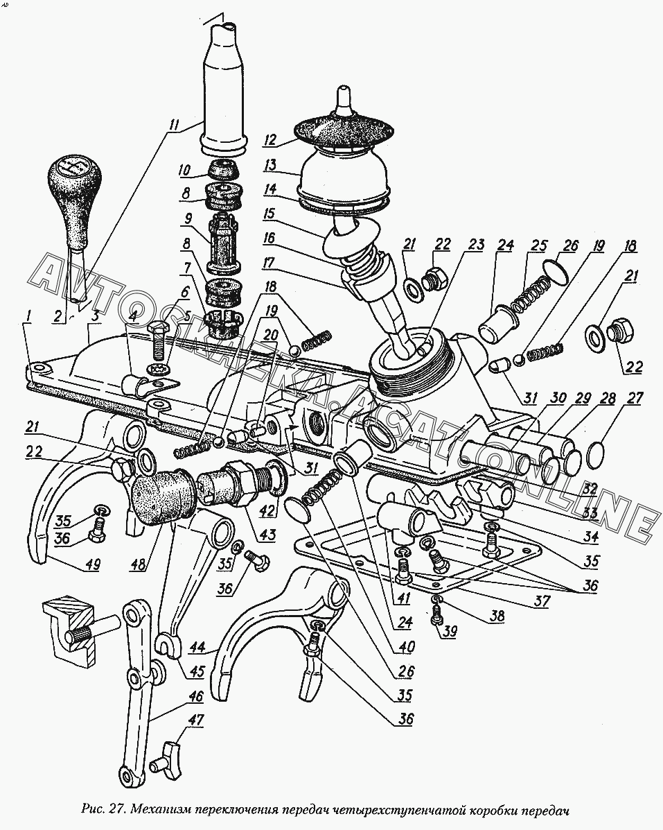 Механизм переключения передач четырехступенчатой коробки передач ГАЗ 31029