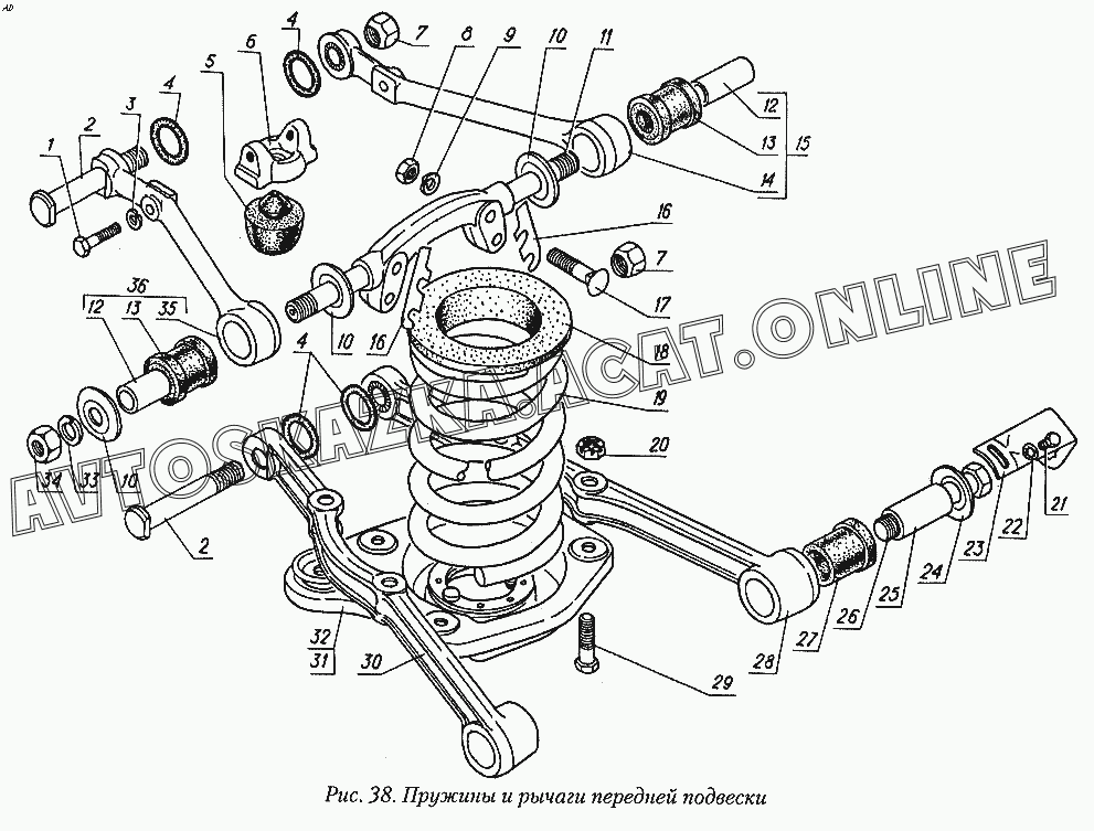 Пружины и рычаги передней подвески (для автомобилей с барабанными тормозами) ГАЗ 31029