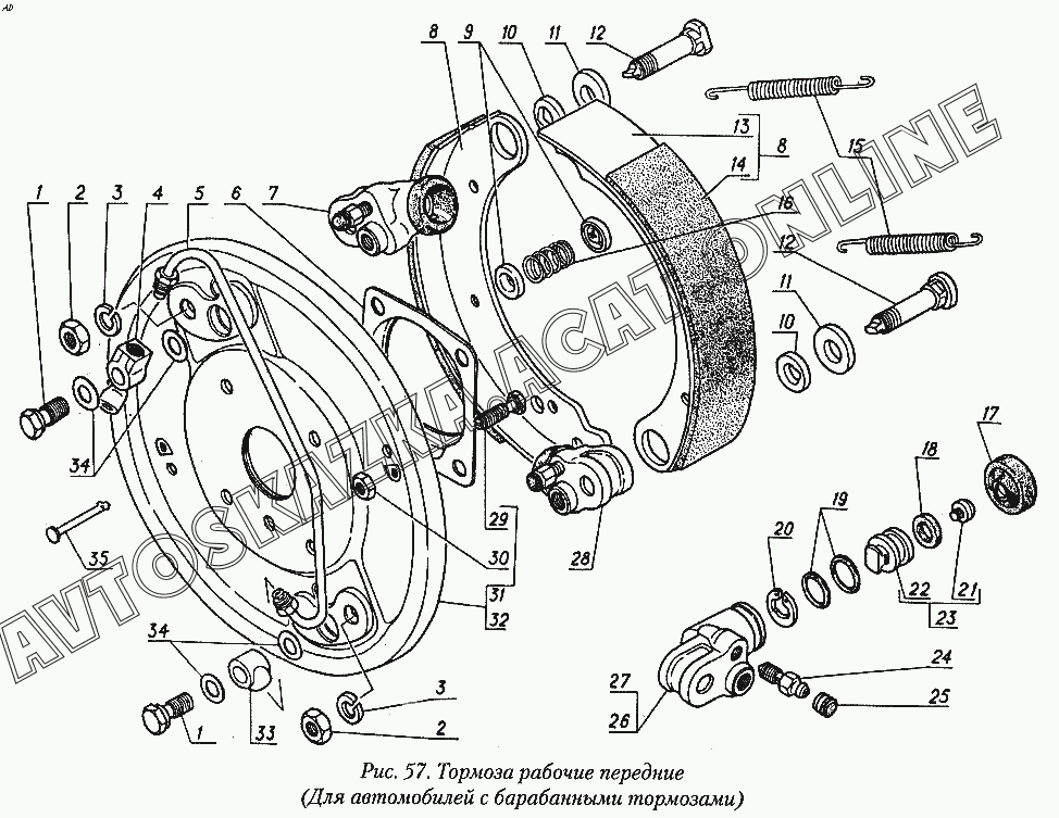 Тормоза рабочие передние (для автомобилей с барабанными тормозами) ГАЗ 31029