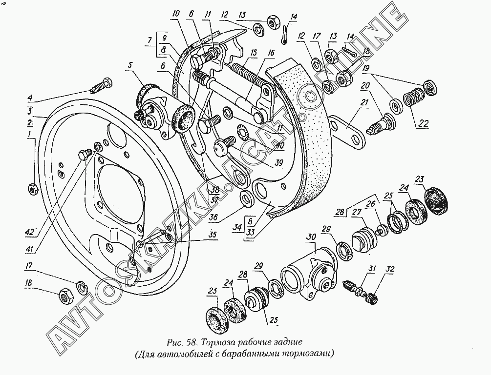 Тормоза рабочие задние (для автомобилей с барабанными тормозами) ГАЗ 31029