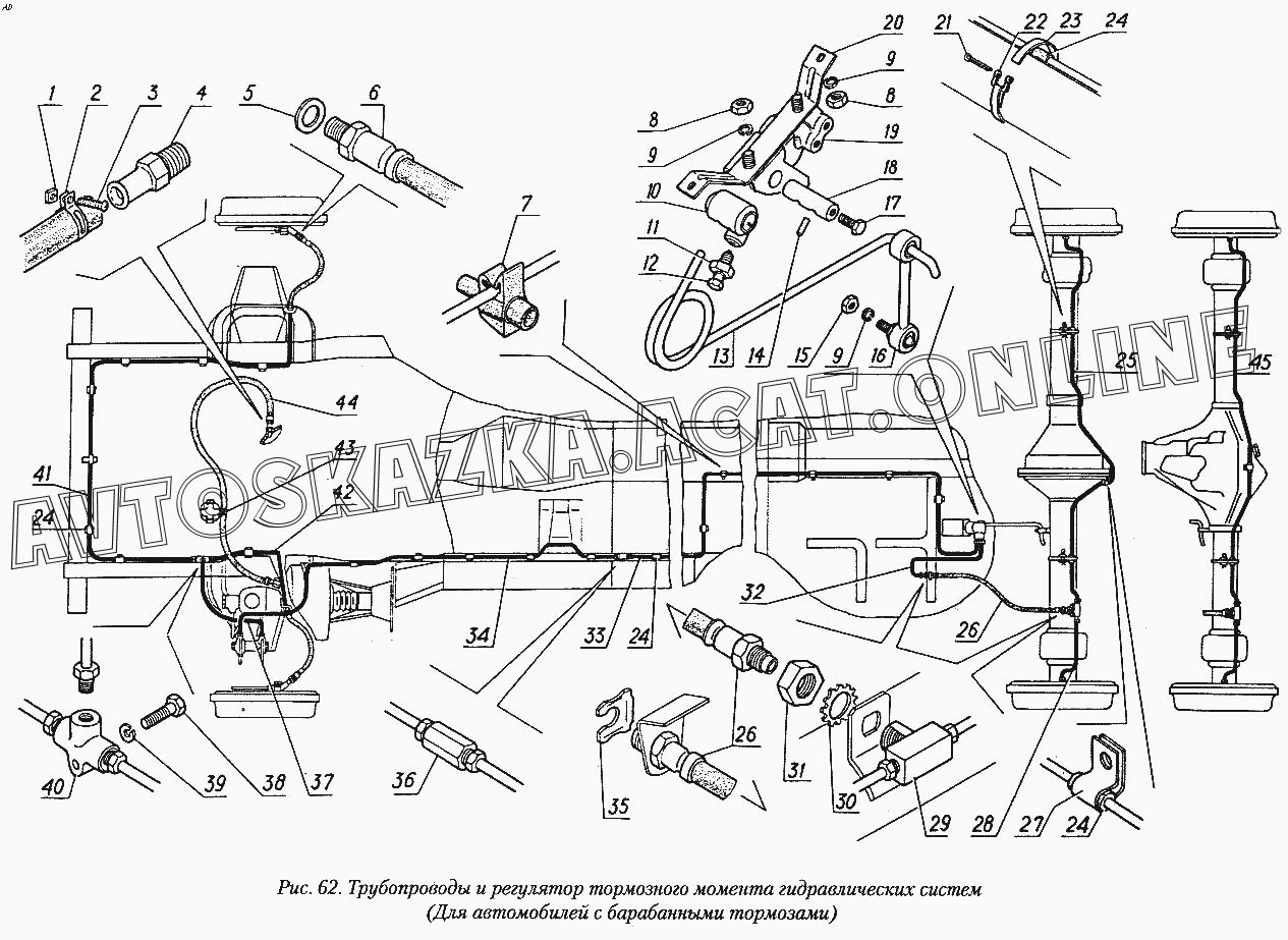 Трубопроводы и регулятор тормозного момента гидравлических систем (для автомобилей с барабанными тормозами)