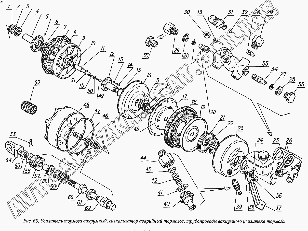 Усилитель тормозов вакуумный, сигнализатор аварийный тормозов, трубопроводы вакуумного усилителя тормоза