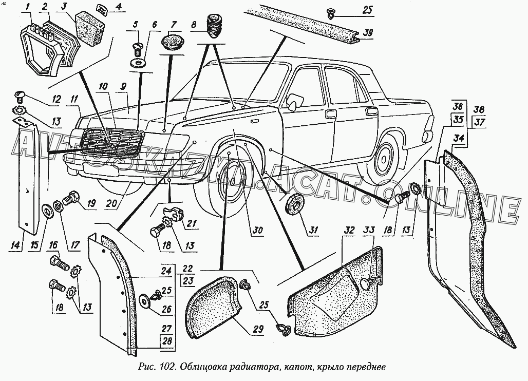 Облицовка радиатора, капот, крыло переднее ГАЗ 31029