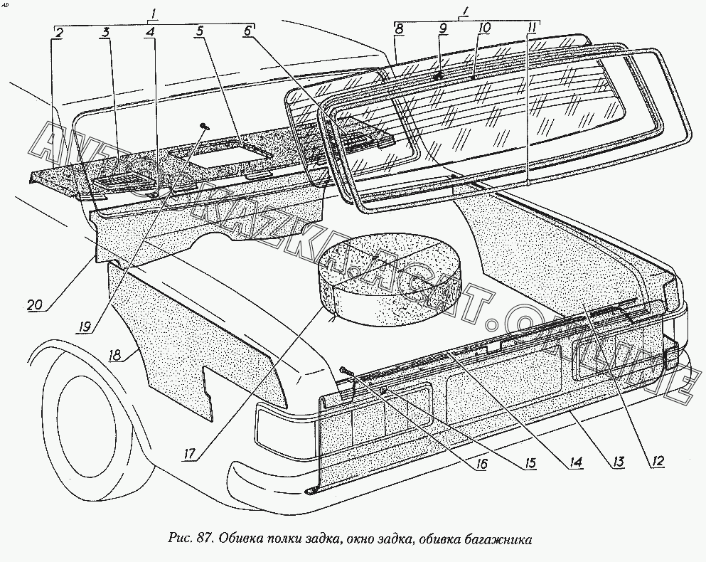 Обивка полки задка, окно задка, обивка багажника ГАЗ 31029