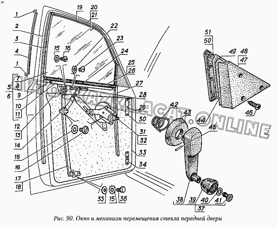 Окно и механизм перемещения стекла передней двери ГАЗ 31029