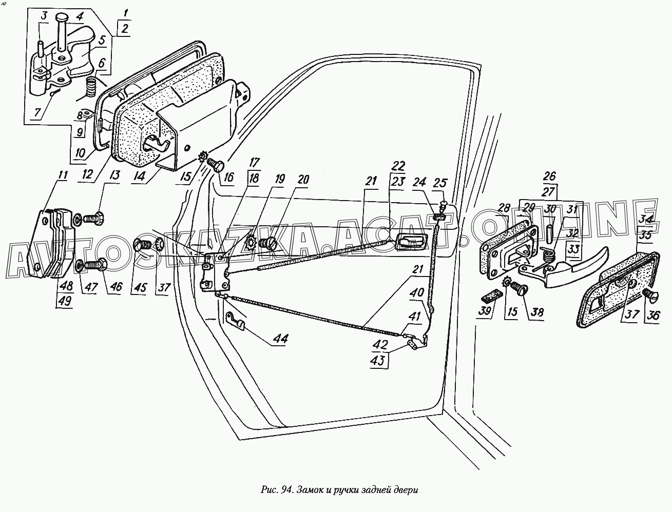 Замок и ручки задней двери ГАЗ 31029