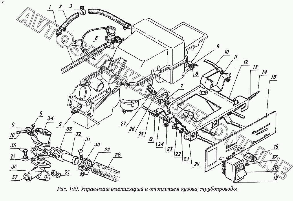 Управление вентиляцией и отоплением кузова, трубопроводы ГАЗ 31029