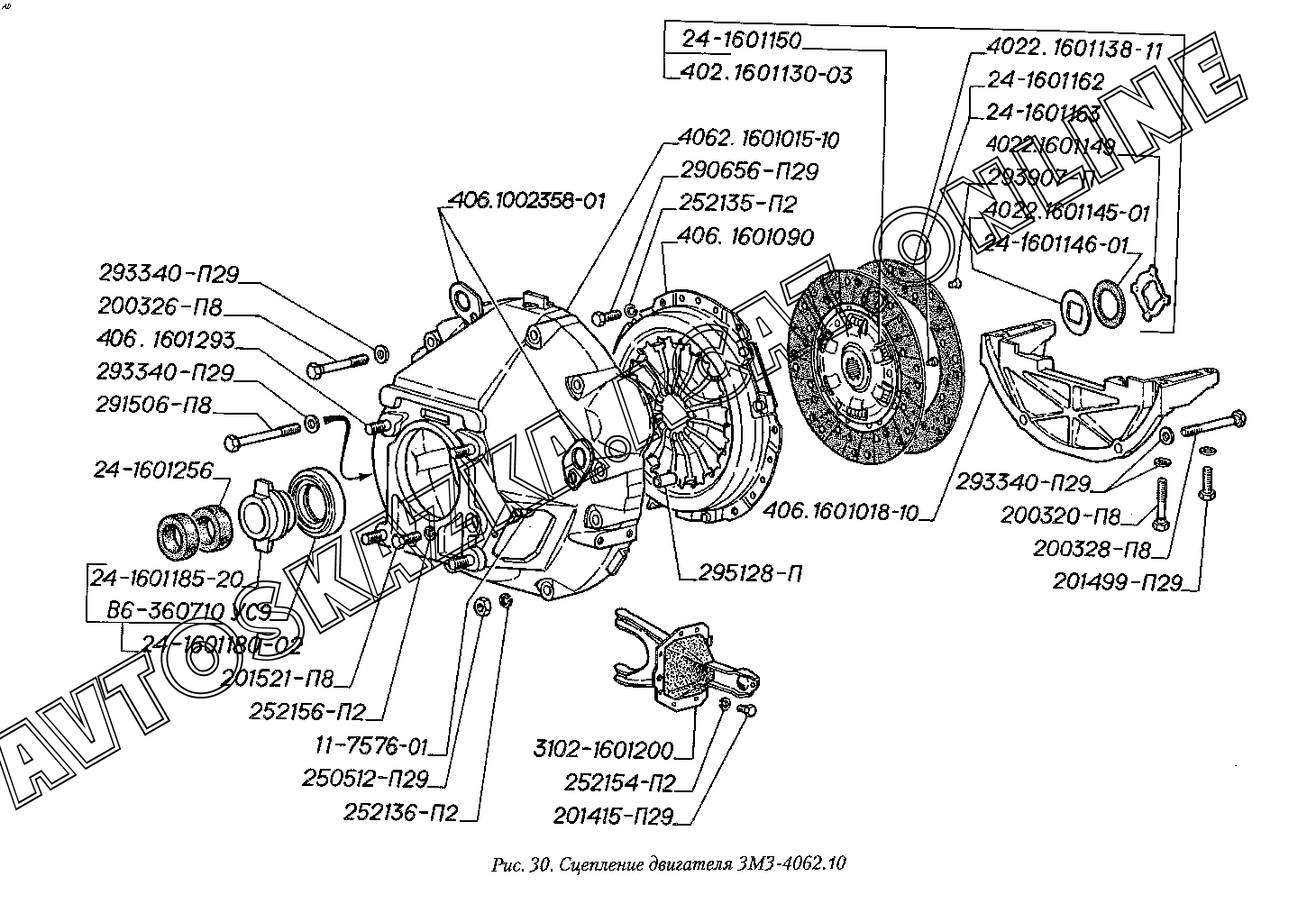 Сцепление двигателя ЗМЗ-4062.10 ГАЗ 3110 (3110-101, 3110-111, 3110-311, 3110-331, 3110-341, 3110-411, 3110-441)