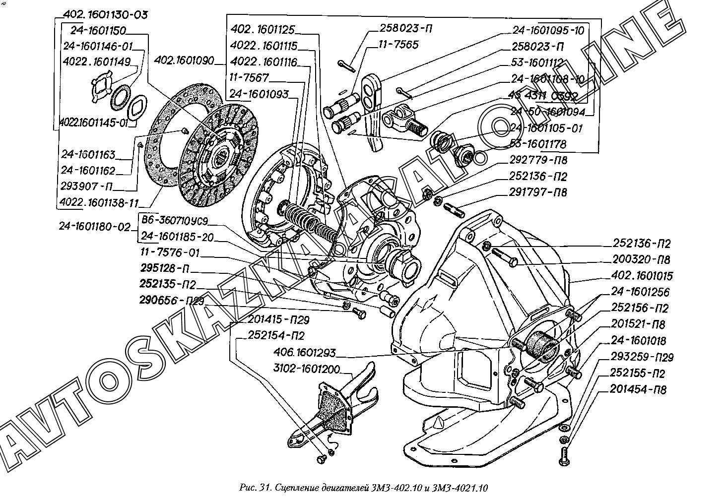 Сцепление двигателей ЗМЗ-402.10 и ЗМЗ-4021.10 ГАЗ 3110 (3110-101, 3110-111, 3110-311, 3110-331, 3110-341, 3110-411, 3110-441)