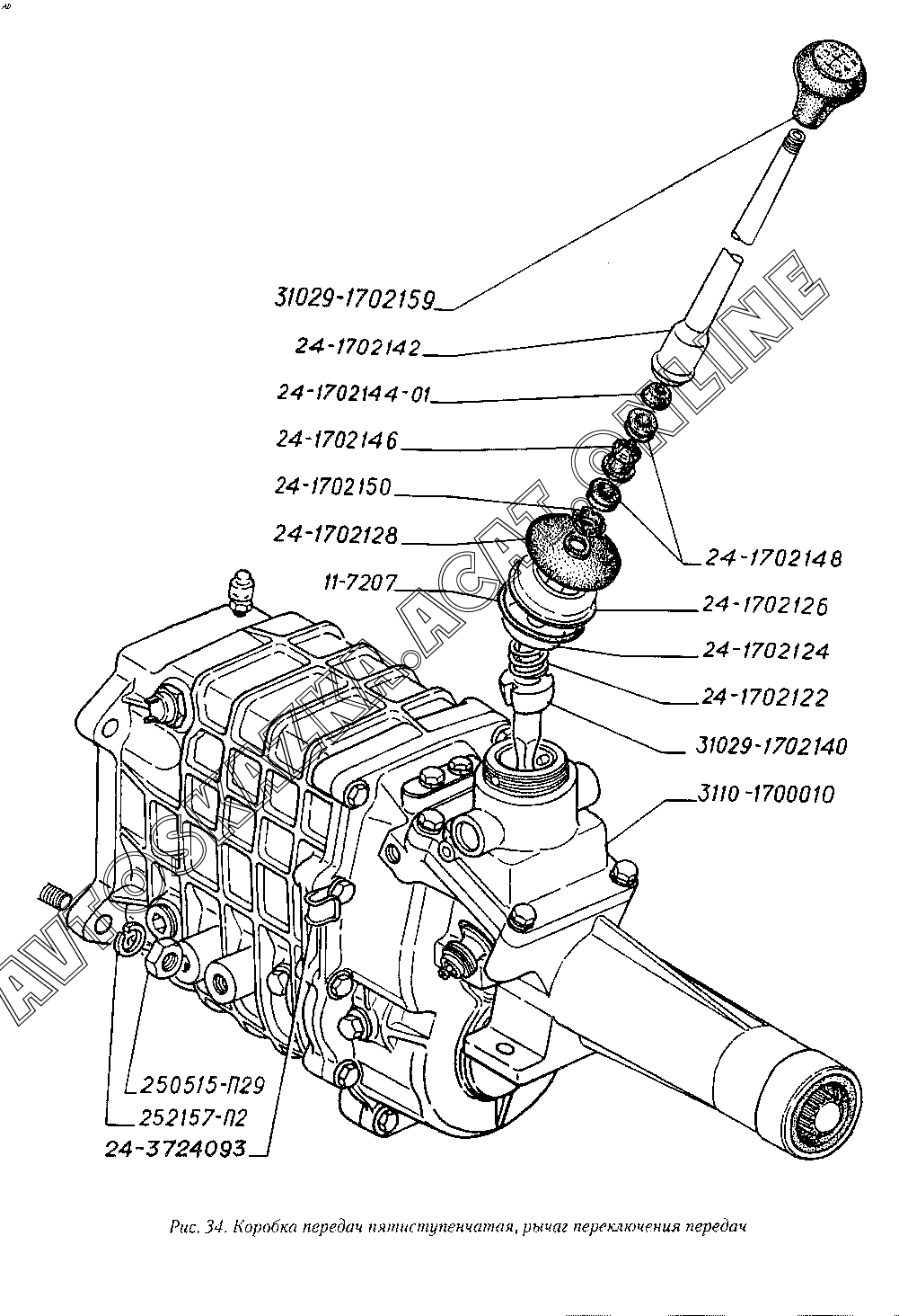 Коробка передач пятиступенчатая, рычаг переключения передач ГАЗ 3110 (3110-101, 3110-111, 3110-311, 3110-331, 3110-341, 3110-411, 3110-441)