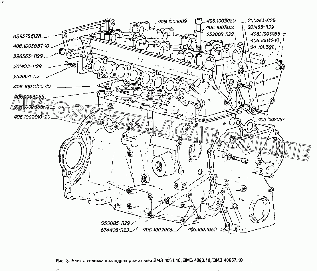 Блок и головка цилиндров двигателей ЗМЗ 4061.10, ЗМЗ 4063.10, ЗМЗ 40637.10 ГАЗ 3302 (33021)