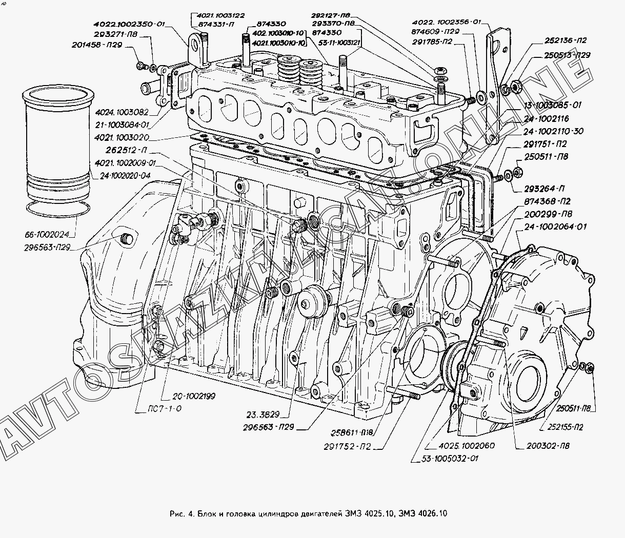 Блок и головка цилиндров двигателей ЗМЗ 4025.10, ЗМЗ 4026.10 ГАЗ 3302 (33021)