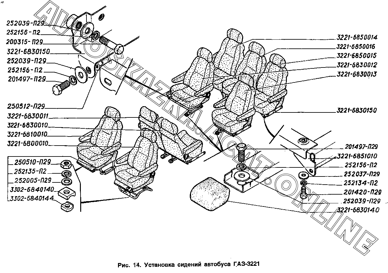 Установка сидений автобуса ГАЗ-3221 ГАЗ 3221 (3221-000012, 3221-000014, 3221-000024, 32213, 32213-000012, 32213-000014, 32213-000024)