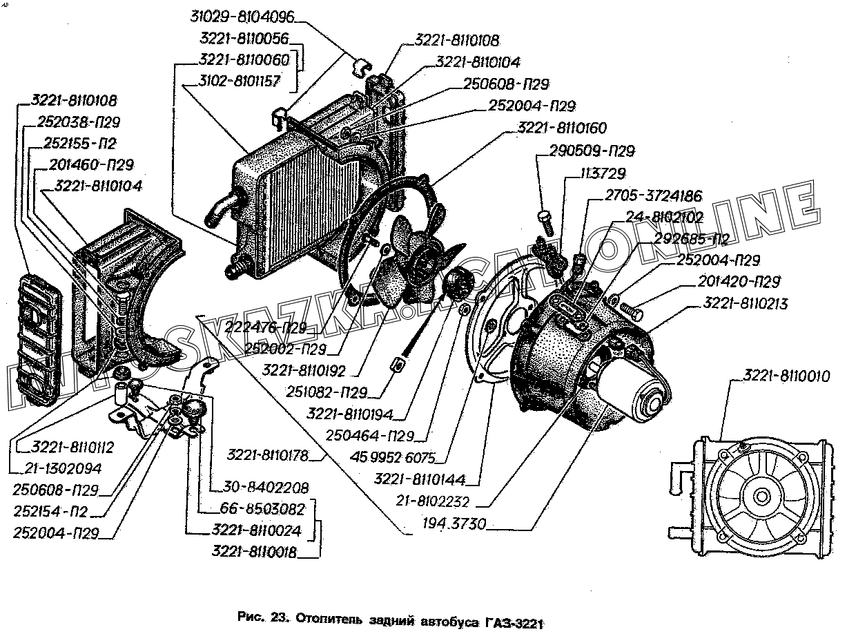 Отопитель задний автобуса ГАЗ-3221 ГАЗ 3221 (3221-000012, 3221-000014, 3221-000024, 32213, 32213-000012, 32213-000014, 32213-000024)