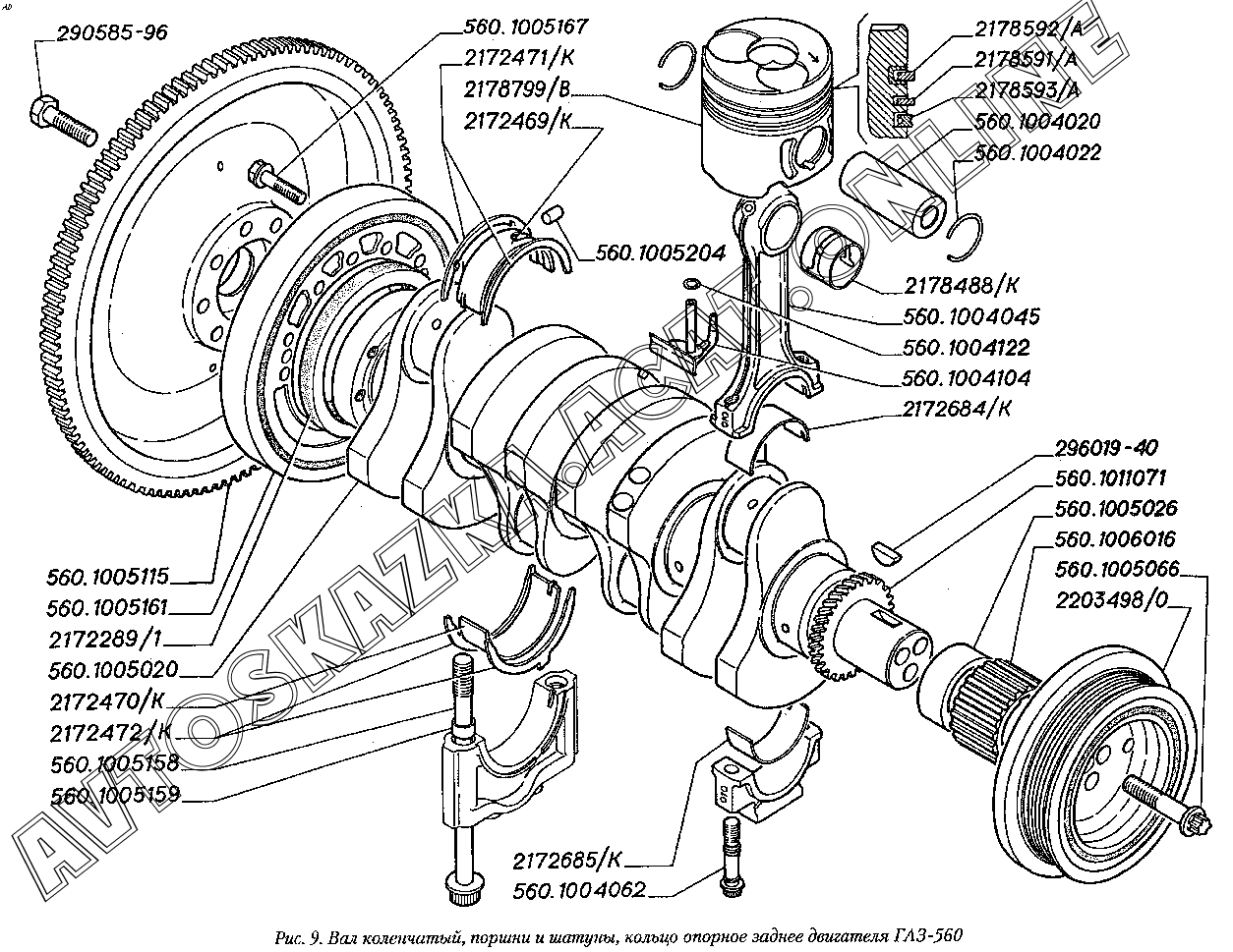 Вал коленчатый, поршни и шатуны, кольцо опорное заднее двигателя ГАЗ-560 ГАЗ 2217 (22171)