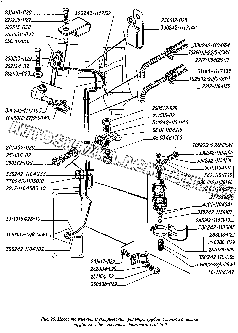Насос топливный электрический, фильтры грубой и тонкой очистки, трубопроводы топливные двигателя ГАЗ-560 ГАЗ 2217 (22171)