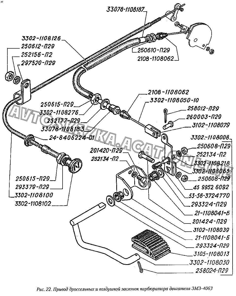 Привод дроссельных и воздушной заслонок карбюратора двигателя ЗМЗ-4063 ГАЗ 2217 (22171)