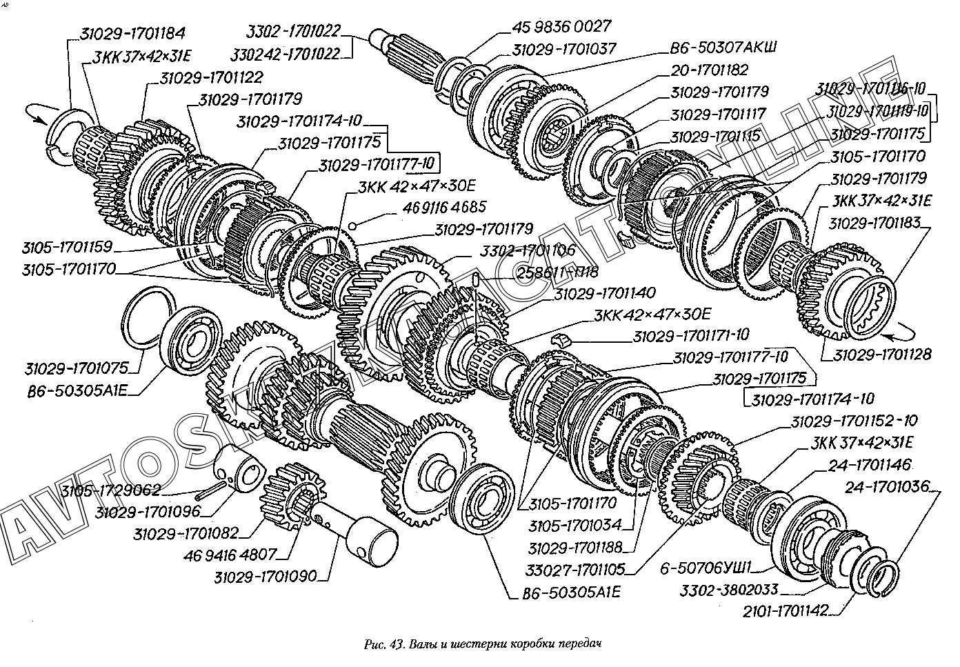 Валы и шестерни коробки передач ГАЗ 2217 (22171)