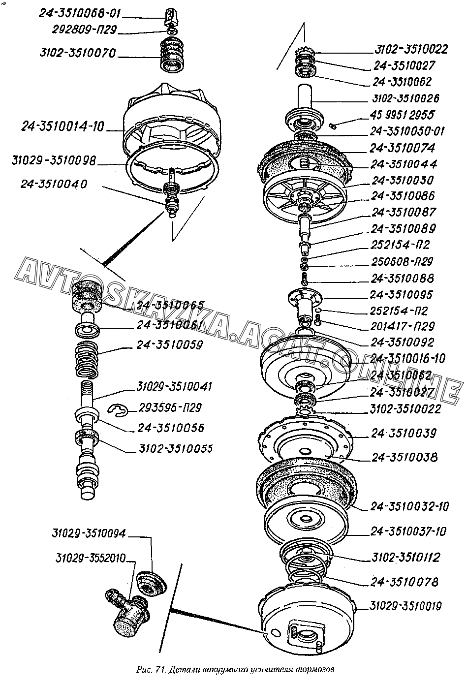 Детали вакуумного усилителя тормозов ГАЗ 2217 (22171)