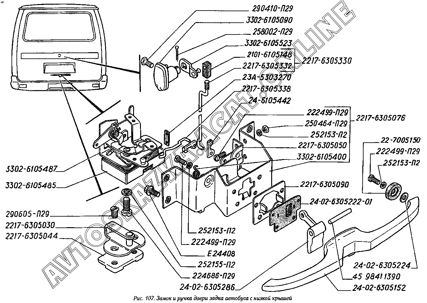 Замок и ручка двери задка автобуса с низкой крышей ГАЗ 2217 (22171)