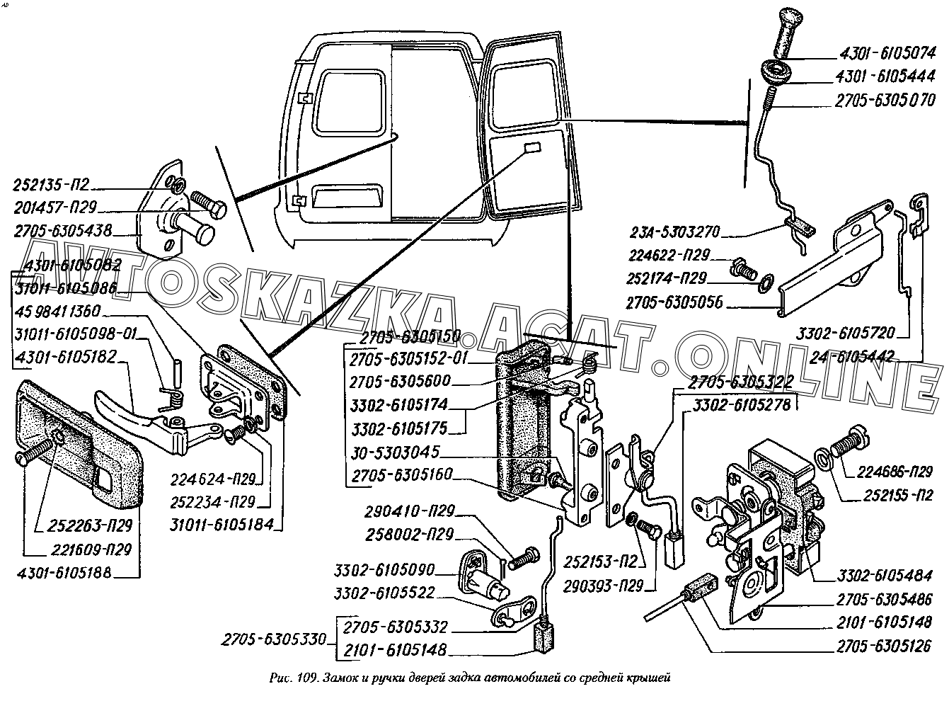 Замок и ручки дверей задка автомобилей со средней крышей ГАЗ 2217 (22171)