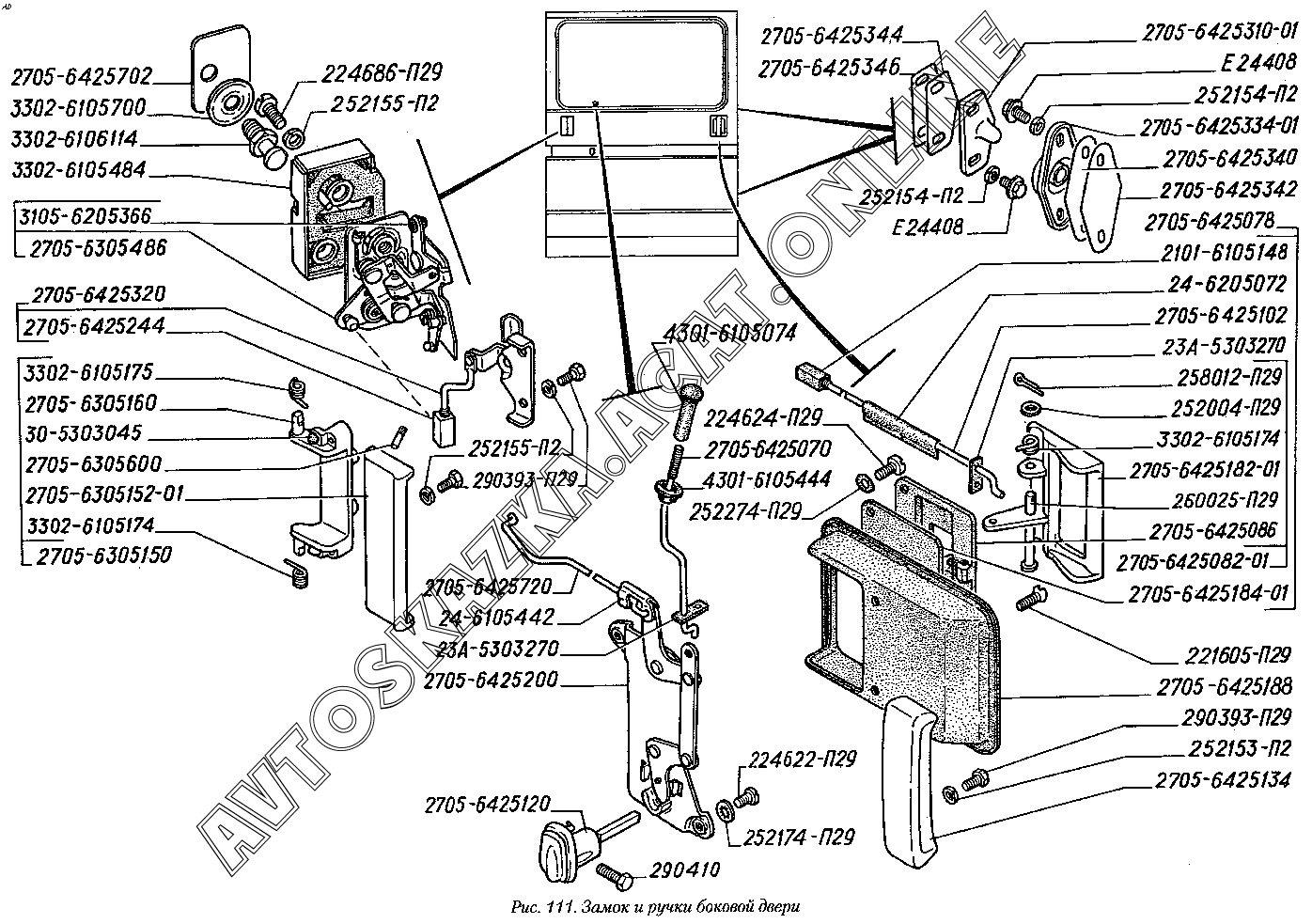 Замок и ручки боковой двери ГАЗ 2217 (22171)